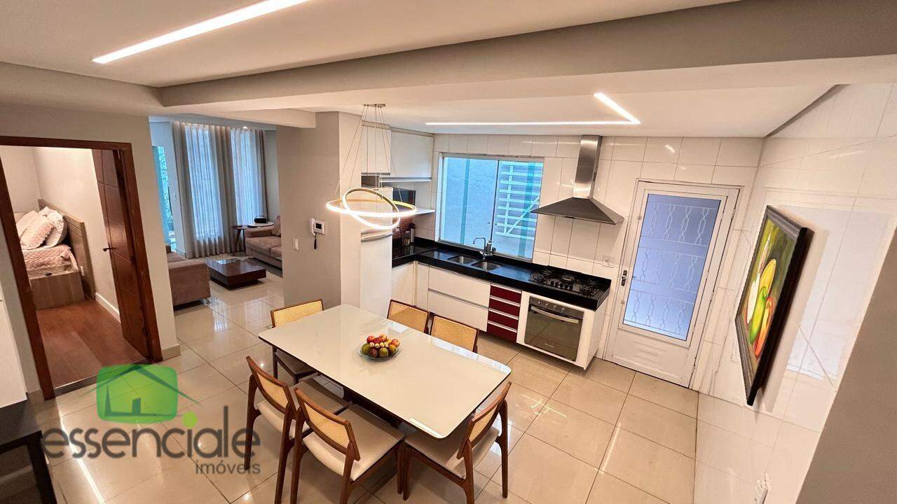 A cozinha é um charme à parte — planejada, com armários, fogão cooktop e exaustor em aço inox.